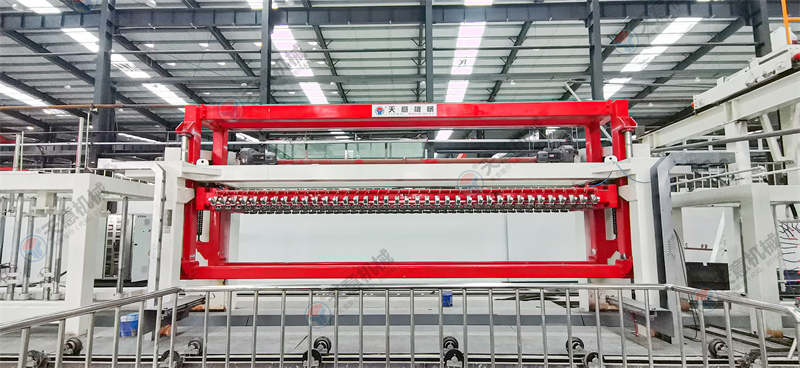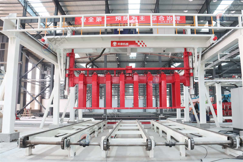 四、翻轉(zhuǎn)切割機組。其主要作用是:蒸壓加氣砌塊在澆注發(fā)氣后,形成大體積坯體,要使坯體達到所要求的產(chǎn)品尺寸,就必須用切割機切割。